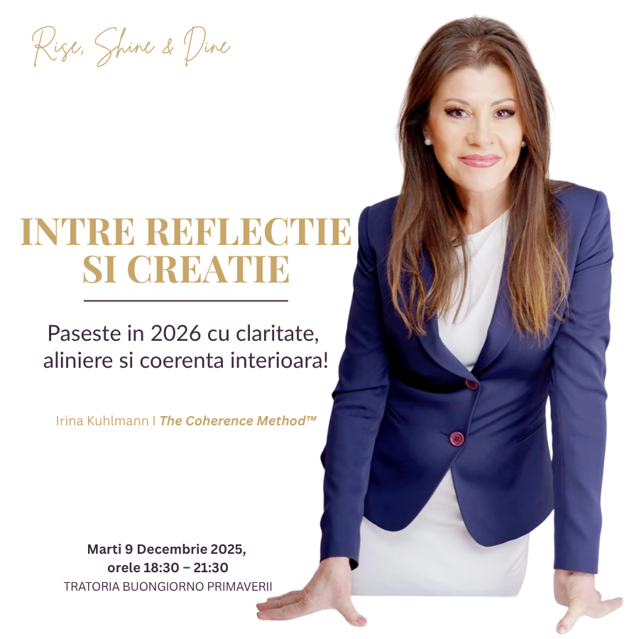 “Seria de workshop-uri “Rise and Shine” organizata de Irina Kuhlman reprezinta un eveniment cu implicatii profunde in educatia unui individ si in progresul acestuia. Avem nevoie sa ne construim o viata buna, cu sens si semnificatie, sa ne definim identitatea si sa ne intelegem asa cum suntem. Armonia noastra cu noi insine determina construirea relatiilor interpersonale de calitate, inlaturarea credintelor limitatoare, optimizarea vietii personale si profesionale. Socrate spunea ca o viata care nu este cercetata nu merita traita. Coaching-ul ajuta sa te cunosti mai bine, sa te dezvolti personal , sa performezi in toate ariile de viata, sa iti configurezi un mindset adecvat.